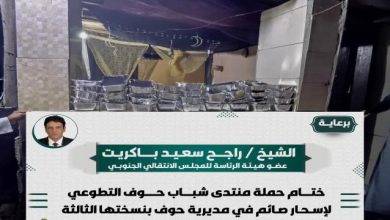 برعاية الشيخ راجح سعيد باكريت.. منتدى شباب حوف التطوعي يختتم حملة سحور صائم