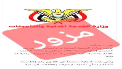 مصدر مسؤول في الخدمة المدنية : لا صحة من تعميم عن اجازة رسمية