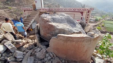 نجاة أسرة من كارثة محققة إثر سقوط صخرة ضخمة على منزلهم في الضالع