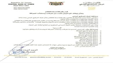 أصدر محافظ البنك المركزي أ. أحمد أحمد غالب، القرار رقم (9) لعام 2025م، بشأن ايقاف التراخيص الممنوحة لعددٍ [10] من…