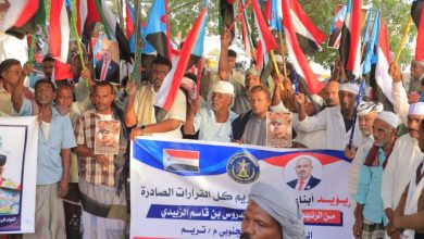 تريم تشهد وقفة جماهيرية حاشدة تأييدًا لقرارات الرئيس الزُبيدي