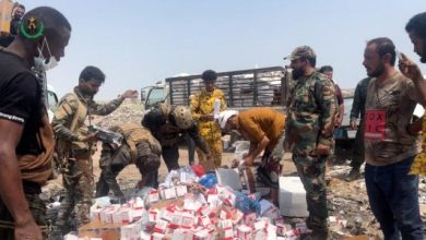 الحزام الأمني يتلف كميات كبيرة من الأدوية المخدرة والمبيدات والسجائر المهربة