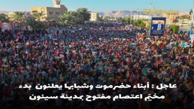 أبناء حضرموت يعلنون بدء مخيّم اعتصام مفتوح حتى رحيل قوات المنطقة العسكرية الأولى