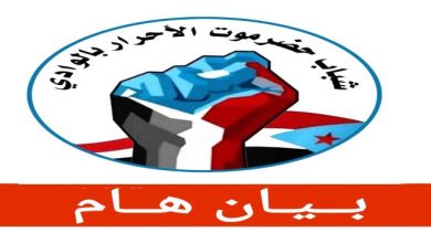 الشباب الأحرار: أبناء حضرموت لن يقبلوا بسياسة القمع والترهيب