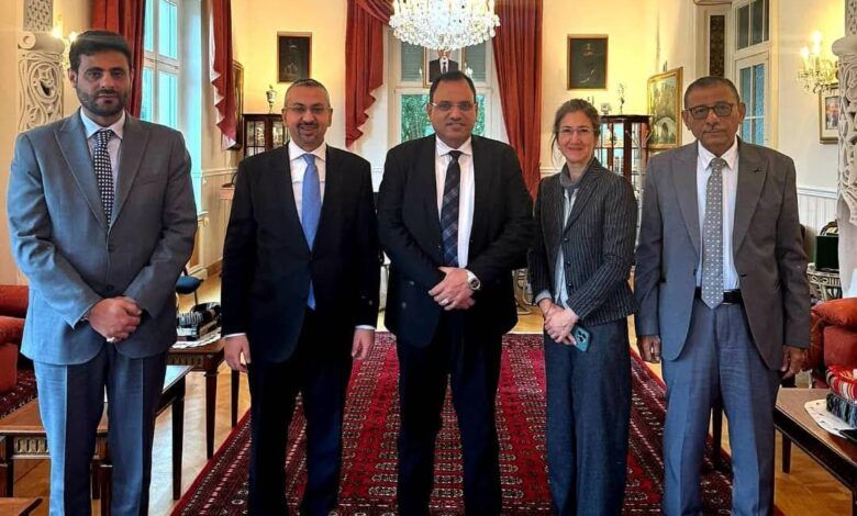 أستقبل وزير الزراعة والري والثروة السمكية، اللواء/ سالم السقطري، بمبنى السفارة اليمنية، أليوم، في جمهورية المانيا الاتحادية، السيدة/ نتاشا هايوارد، مديرة البرنامج العالمي للزرعة والأمن الغذائي (GAFSP) في اطار برنامج مشاركته الى فعاليات المنتدى الدولي للغذاء والزراعة، في العاصمة الالمانية برلين.