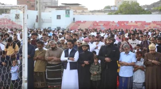أدّت قيادات المجلس الانتقالي الجنوبي، اليوم الجمعة، صلاة عيد الأضحى المُبارك مع جموع المصلين في ملعب الشهيد الحبيشي بمدينة كريتر بالعاصمة عدن.