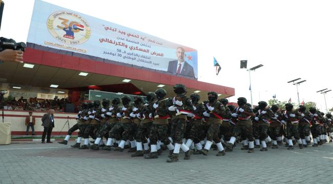 الرئيس الزُبيدي يشهد عرضا عسكريا مهيبا للقوات المسلحة الجنوبية احتفاءً بالعيد الـ58 للاستقلال الوطني 30 نوفمبر