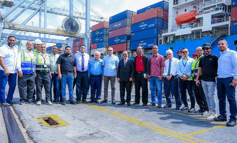 وزير النقل يطلع على سير الحركة التجارية والنشاط في ميناء الحاويات بالعاصمة عدن