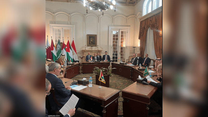 وشدّد وزراء مصر والسعودية وقطر والإمارات والأردن في بيانهم الختامي على “رفض المساس” بحقوق الفلسطينيين “من خلال الأنشطة الاستيطانية، أو الطرد وهدم المنازل، او ضمّ الأرض”، أو من خلال “التهجير أو تشجيع نقل او اقتلاع الفلسطينيين من أرضهم بأي صورة من الصور أو تحت أي ظروف ومبررات”. وقالوا إن دولهم “تتطلّع للعمل مع إدارة الرئيس الأميركي دونالد ترامب لتحقيق السلام العادل والشامل في الشرق الأوسط، وفقاً لحل الدولتين”.