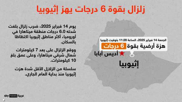 مراكز رصد: زلزال بقوة 6 درجات يضرب إثيوبيا