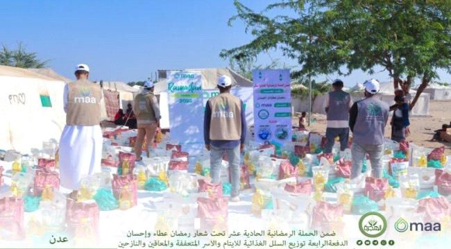 وشملت عملية التوزيع 800 سلة غذائية، وزعت على الأيتام والأرامل وذوي الإحتياجات الخاصة والنازحين والأسر الفقيرة والمتعففة من مناطق متفرقة من العاصمة عدن .