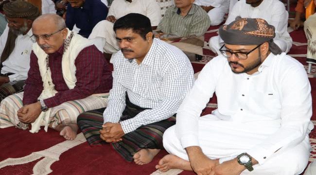 الكثيري والمحمدي يؤديان صلاة العيد مع جموع المصلين بمسجد الشهداء بالمكلا