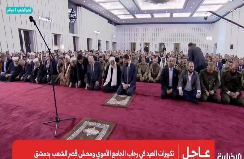 أدى الرئيس السوري أحمد الشرع وحشد من المصلين صلاة عيد الفطر المبارك من مصلى قصر الشعب في العاصمة السورية دمشق في أول مرة يشهد فيها هذا المكان حدثا من هذا النوع.