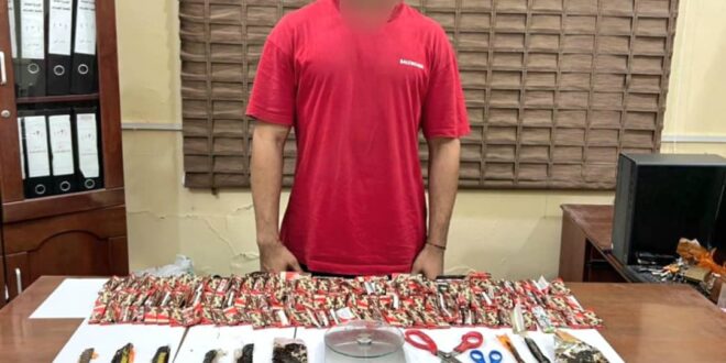 وأسفرت العملية عن ضبط كمية من مادة الحشيش المخدر مقطعة وجاهزة للترويج بين أوساط الشباب والفتيات، بالإضافة إلى ميزان إلكتروني ملطخ ببقايا الحشيش يُستخدم لتوزيع الكميات وبيعها بالجرام، ومقص وأوراق لف تكفي لتجهيز أكثر من ألف سيجارة مخدرة.