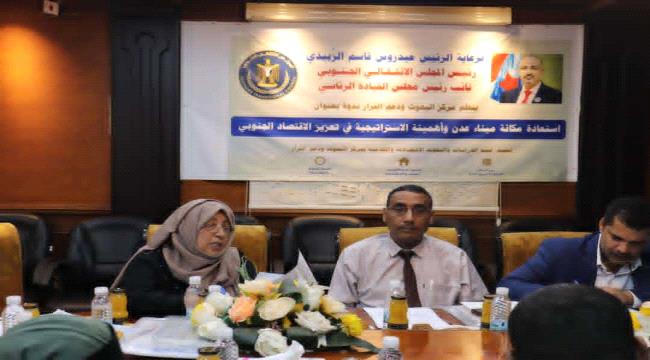 نظم مركز البحوث ودعم القرار للمجلس الانتقالي الجنوبي، اليوم الأربعاء، ندوة علمية بعنوان: “استعادة مكانة ميناء عدن وأهميته الاستراتيجية في تعزيز الاقتصاد الجنوبي”، وذلك بالتنسيق مع مؤسسة موانئ خليج عدن – ميناء عدن، وبرعاية كريمة من الرئيس القائد عيدروس قاسم الزُبيدي، رئيس المجلس الانتقالي الجنوبي، نائب رئيس مجلس القيادة الرئاسي.