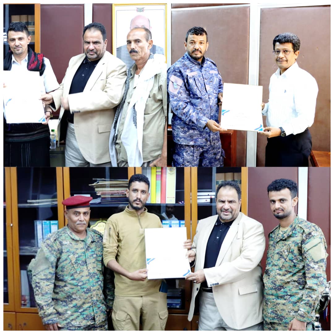 كما قام المهندس جمال عبدالله سلوم نائب المدير العام للشؤون المالية والإدارية بتكريم قيادة شرطة النجدة م/ لحج بقيادة العقيد محمد عمر الجنيد تسلم عنه أركان شرطة النجدة عبدالقوي الملجمي.