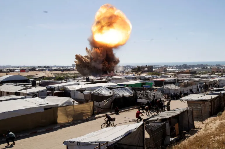 قصف جيش الاحتلال الإسرائيلي، اليوم الخميس، خيام النازحين في خان يونس ومناطق سكنية عدة بعد ساعات من ارتكابه مجازر في قطاع غزة استشهد فيها أكثر من 100 فلسطيني.