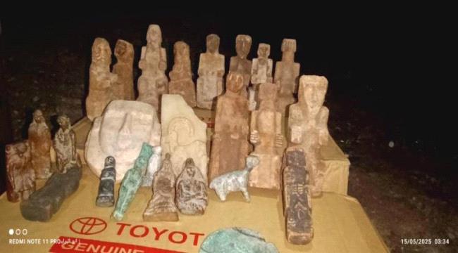 وتمكن أفراد نقطة التفتيش للواء 17 عمالقة، في باب المندب صباح أمس الخميس، 15/ مايو/ 2025م، من كشف القطع الأثرية، التي قام المهربون بإخفائها بطريقة تمويه معقدة، داخل أحد الكراتين، الذي يقع بين عشرات الكراتين المماثلة، التي تحوي قطع غيار سيارات على متن سيارتهم، ولكن أفراد النقطة تمكنوا بيقظة تامة، وحس أمني عالٍ من اكتشافها وضبطها.