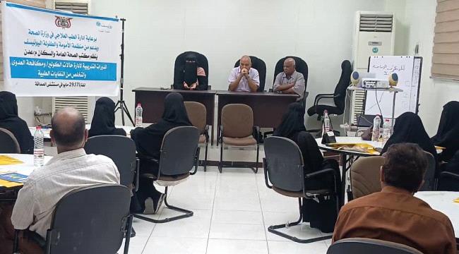 افتتح مدير عام مكتب الصحة العامة والسكان بالعاصمة عدن، الدكتور أحمد مثنى البيشي، ومدير عام مستشفى الصداقة التعليمي العام، الدكتور محمد منصور حيدرة، اليوم في مبنى مستشفى الصداقة، دورات تدريبية لإدارة حالات الكوليرا ومكافحة العدوى والتخلص من النفايات الطبية. والذي نظمها مكتب الصحة العامة والسكان – عدن، برعاية إدارة الطب العلاجي بوزارة الصحة، وبدعم من منظمة الأمم المتحدة للطفولة (اليونيسف). وبحضور منسقة رأس المال البشري الطارئ في مكتب الصحة بعدن، الدكتورة فاطمة العريقي.