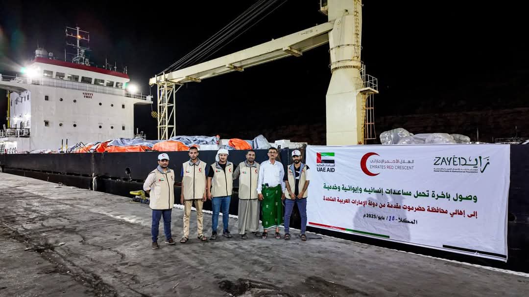 420 طناً من المساعدات تصل حضرموت بدعم إماراتي لتعزيز القطاعات الخدمية والصحية