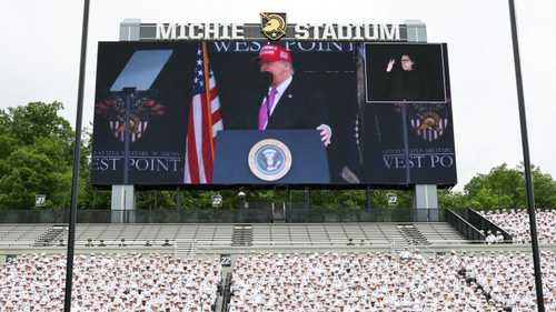 وقال القائد الأعلى للجيش الأميركي، لخريجي الأكاديمية البالغ عددهم 1002، والذين سيُصبحون برتبة ملازم ثانٍ في الجيش: “أنتم الفائزون، كلٌّ منكم. أنتم أول خريجي ويست بوينت في العصر الذهبي لأميريكا”.