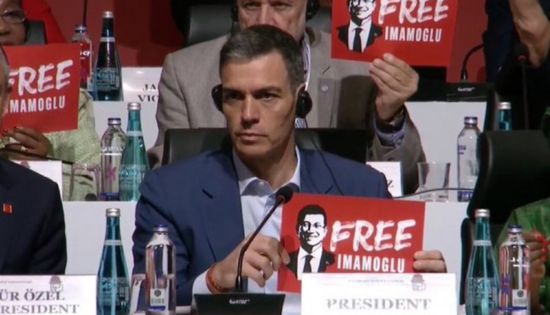 ورفع مسؤولون من أحزاب اشتراكية حول العالم، من بينهم سانشيز، خلال اجتماع مجلس الاشتراكية الدولية، الذي عقد في إسطنبول، لافتات كُتب عليها “الحرية لإمام أوغلو”، بحسب لقطات نشرها حزب الشعب الجمهوري، أبرز أحزاب المعارضة في تركيا، والذي ينتمي إليه إمام أوغلو ويتزعمه أوزغور أوزيل، نائب رئيس الاشتراكية الدولية.