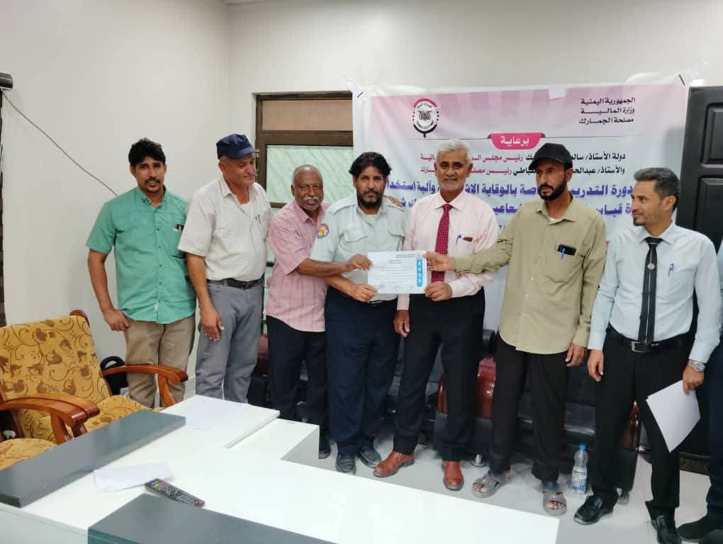 حضر الاختتام الأستاذ عبدالله غالب حرش نائب المدير العام والاستاذ ربيع حمدون نائب مدير العام لشؤون اجراءات المسافرين والأخ نبيل علوان نائب مدير إدارة الضابطة الجمركية ومكافحة التهريب ونائب مدير الضابطة الأخ احمد مسن بلحاف