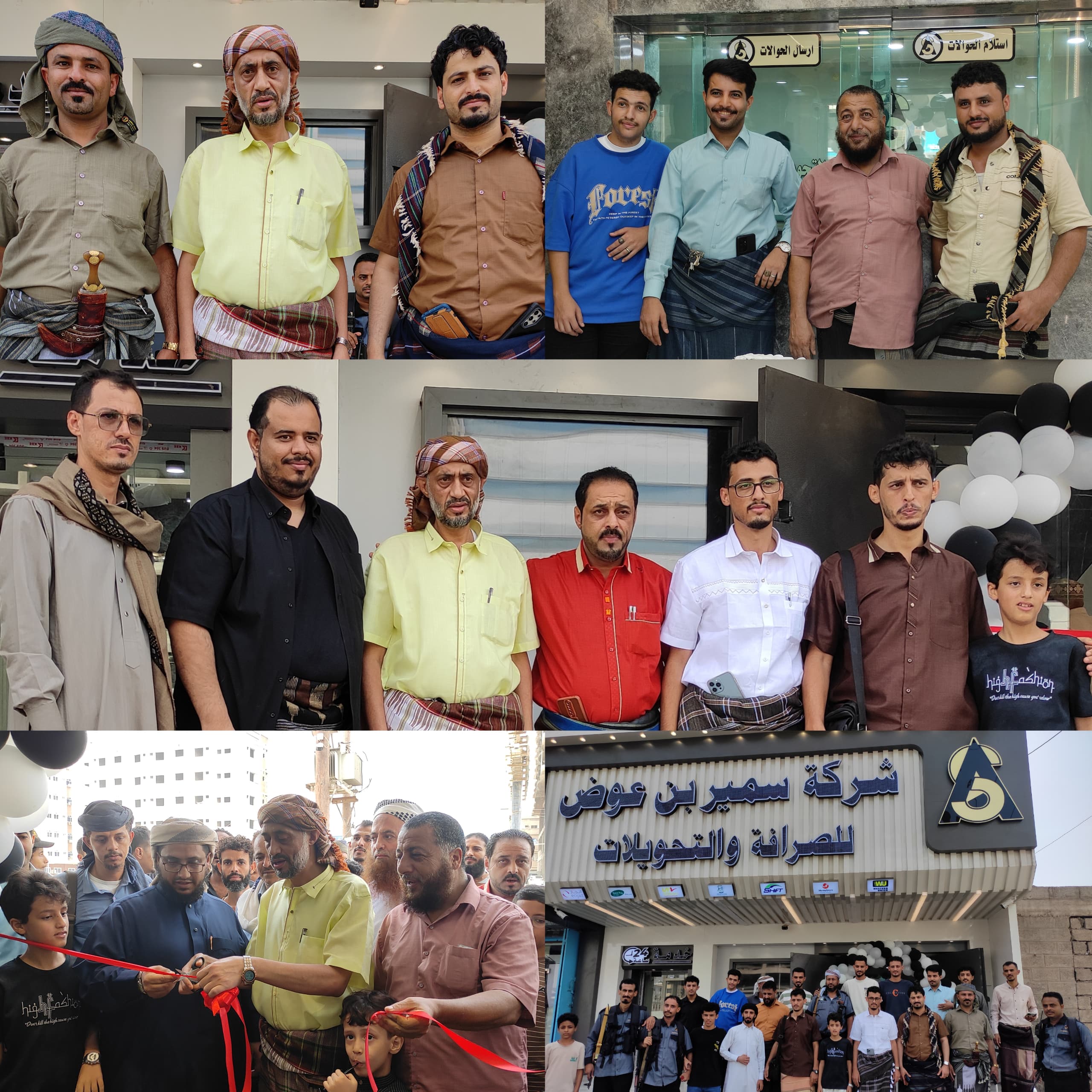 افتتح صباح اليوم في مديرية المنصورة بالعاصمة عدن مقر الادارة العامة لشركة سمير بن عوض للصرافة والتحويلات، الاستاذ سمير بن عوض رئيس مجلس إدارة شركة سمير بن عوض للصرافة والتحويلات ، والأستاذ محمد سمير بن عوض.
