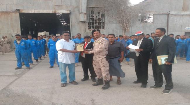 وكان في استقبالهم قائد الورشة المقدم بكيل صالح الحوشبي، الذي رحب بهم واستعرض أمامهم سير العمل في الورشة.