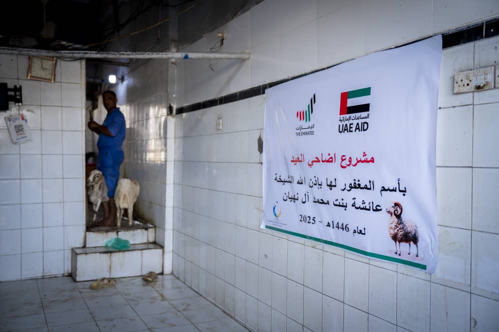 مشروع أضاحي العيد باسم المغفور لها الشيخة عائشة بنت محمد آل نهيان، وبدعم وتمويل من دولة الإمارات العربية المتحدة