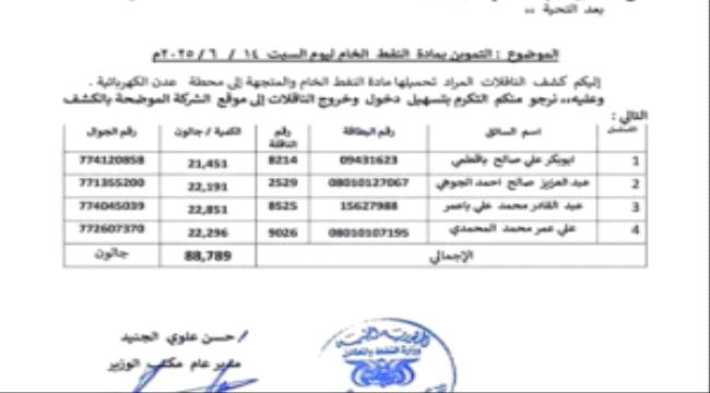توجيهات بإمداد كهرباء عدن بـ12 مقطورة نفط يوميًا