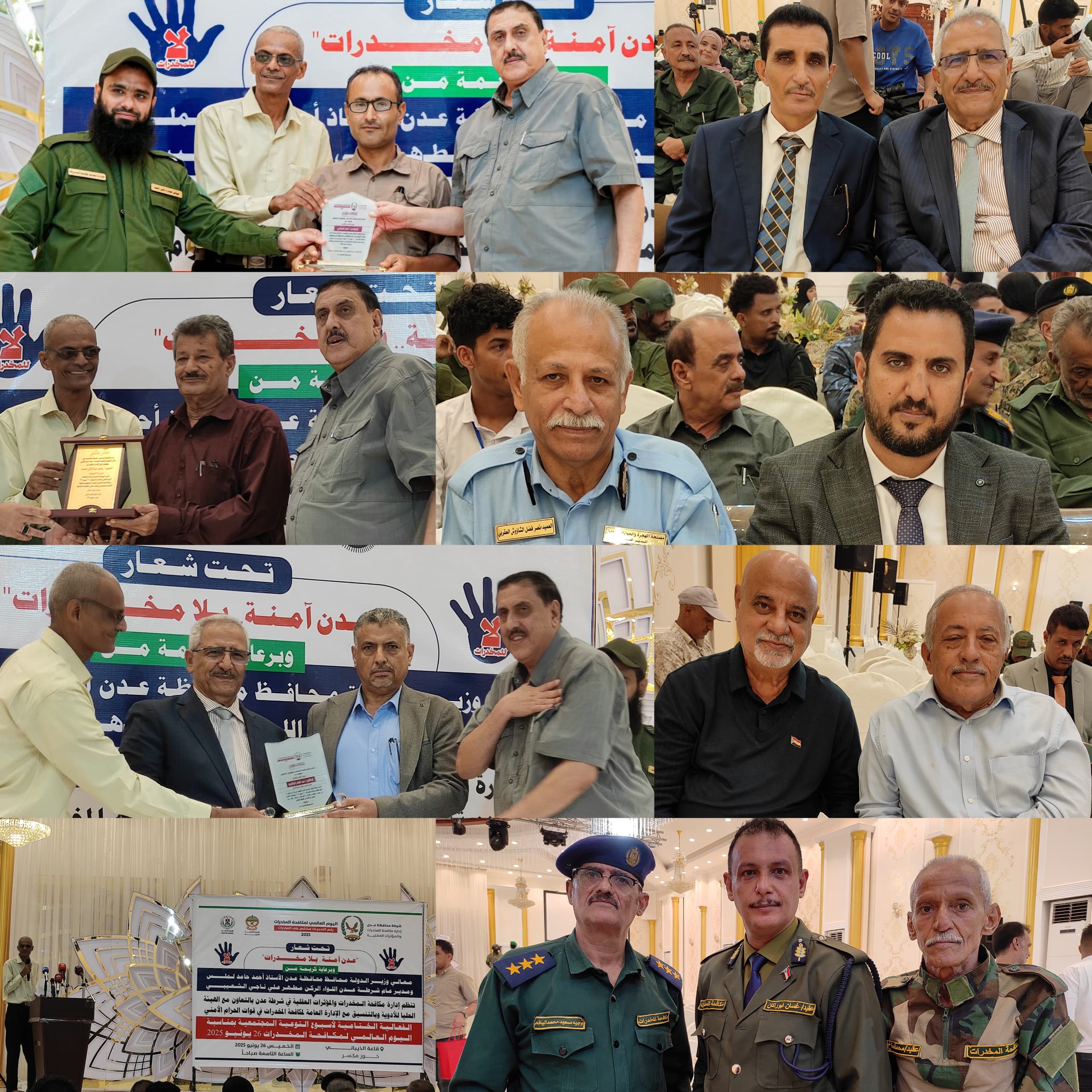 وتخلل الحفل الختامي تكريم الجهات الراعية والداعمة لفعاليات اسبوع مكافحة المخدرات وكل الشخصيات المجتمعية والاكاديمية و الأمنية والمدنية والإعلامية التي شاركت وساهمت في إنجاح فعاليات اسبوع مكافحة المخدرات ،وتكريم الجانب الإعلامي الاستاذ ناصر المشارع اعلامي بإدارة الأمن عدن وشركة ميكرو ميديا جمال معوضة.