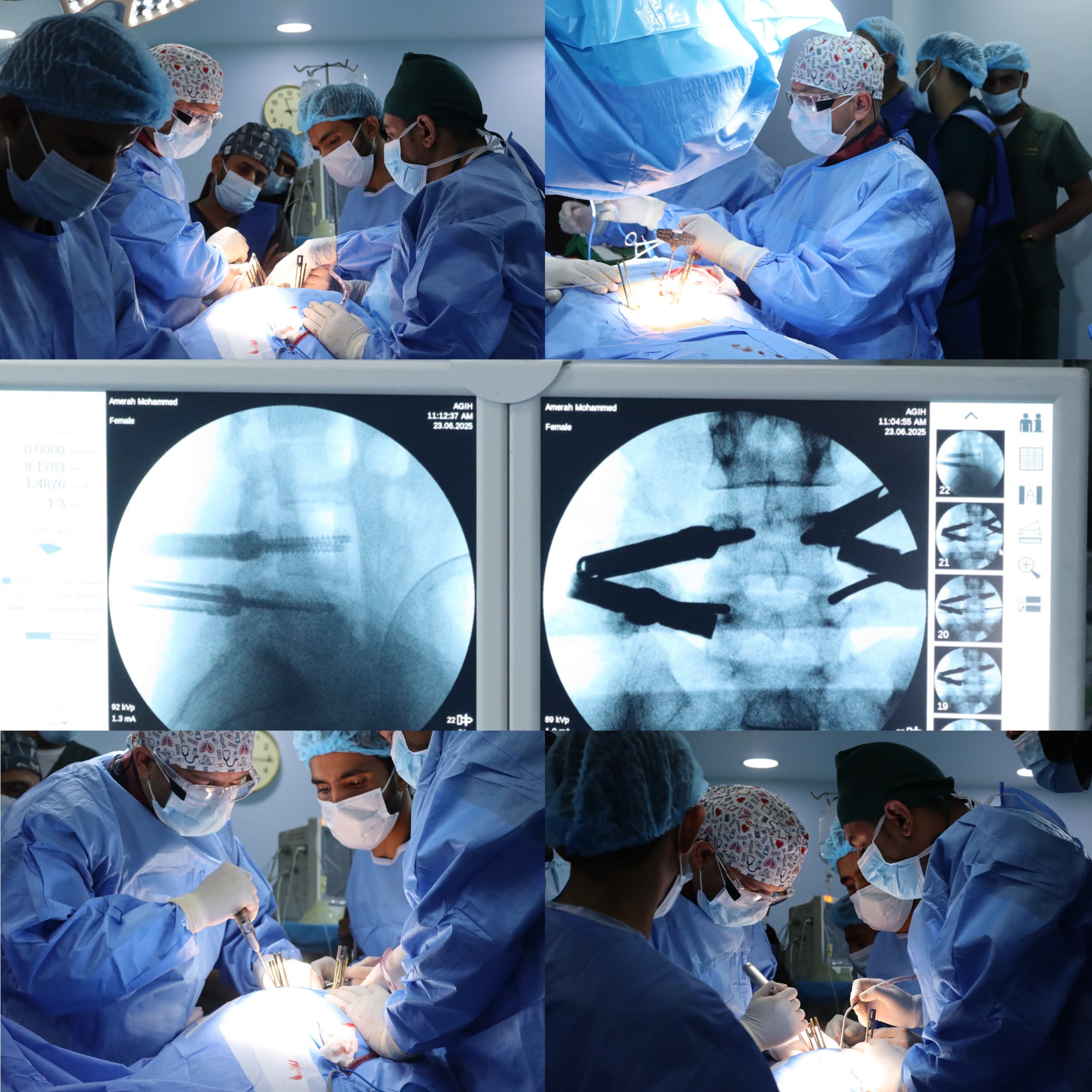 العملية التي أجراها الطبيب الزائر الدكتور جهاد محمود اليافعي – استشاري جراحة المخ والأعصاب والعمود الفقري – بمشاركة فريقه الطبي، استهدفت مريضة في الثلاثين من عمرها كانت تعاني من انزلاق حاد في الفقرتين القطنيتين الرابعة والخامسة، ترافق مع ضغط شديد على أعصاب القدم، ما تسبب لها بآلام مزمنة وصعوبات في الحركة.