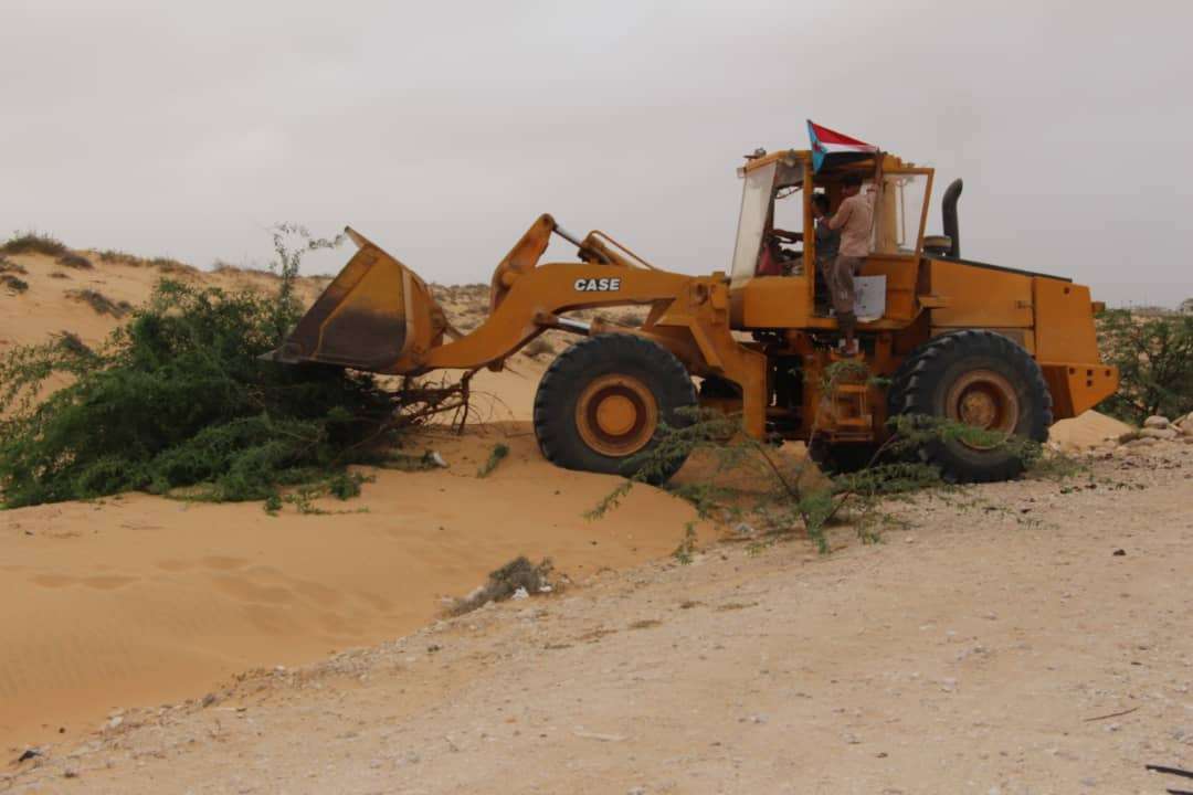 انتقالي حصوين يزيل الأشجار من جانبي الخط الدولي حفاظًا على سلامة مستخدمي الطريق