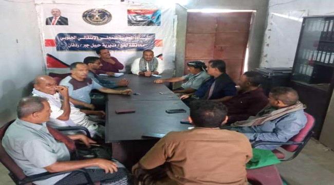 عقدت الهيئة التنفيذية للقيادة المحلية للمجلس الانتقالي الجنوبي في مديرية حبيل جبر بمحافظة لحج، اليوم السبت، اجتماعا استثنائياً، برئاسة رئيس القسم التنظيمي، وليد محمد ثابت، وبحضور مدير الإدارة التنظيمية في تنفيذية انتقالي المحافظة، الدكتور صلاح صالح شائف.
