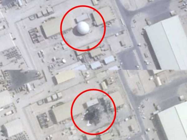 وتظهر صور الأقمار الاصطناعية من شركة “بلانت لابس بي بي سي” وجود القبة المثلثية في قاعدة العديد الجوية صباح 23 يونيو، قبل ساعات من الهجوم.