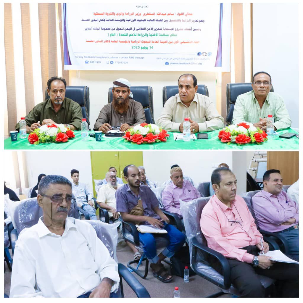 برعاية الوزير السقطري.. إنعقاد اللقاء التنسيقي الأول بين الهيئة العامة للبحوث الزراعية والمؤسسة العامة لإكثار البذور