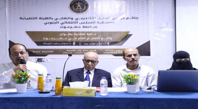 حلقة نقاشية لمنسقية الانتقالي بجامعة حضرموت حول واقع التعليم العام