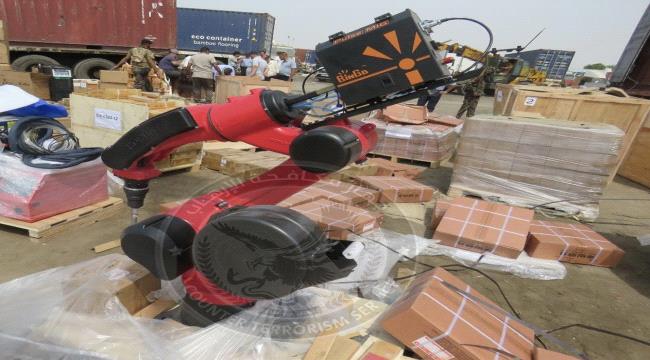 في إنجاز أمني نوعي، تمكن جهاز مكافحة الإرهاب، بالتنسيق مع النائب العام القاضي قاهر مصطفى، وأمن المنطقة الحرة في ميناء عدن، من ضبط حاويات على متن سفينة تجارية محمّلة بشحنة خطيرة، تضمنت طائرات مسيّرة، وأجهزة لاسلكية، ووحدات تحكم متقدمة للطائرات المسيّرة، بالإضافة إلى قطع غيار أسلحة ومعدات متنوعة أخرى.