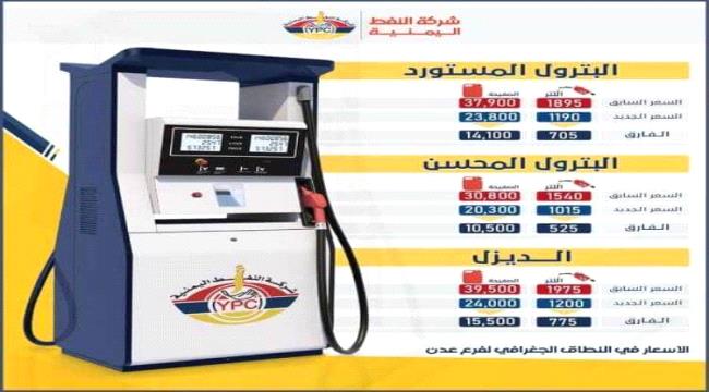 وأقرت الشركة سعر لتر البترول المستورد ب1,190 ريال حيث ستباع صفيحة البترول سعة 20 ب23,800 ريال وفقا للسعر الجديد فيما حدد سعر لتر البترول المحلي ب1,015 ريال والصفيحة سعة 20 لتر ب20,300 الف ريال كما أقرت سعر اللتر الديزل ب1,200 ريال وستباع صفيحة الديزل سعة 20 لتر ب24,000 الف ريال، وبلغ الانخفاض في سعر صفيحة البترول المستورد أكثر من 14,000 ريال يمني وأكثر من 10,000 ريال الانخفاض في سعر صفيحة البترول المحلي فيما بلغ الانخفاض في الديزل 15,500 ريال في الصفيحة الواحدة منذ تعافي العملة المحلية وارتفاع قيمته في السوق المحلية مقابل العملات الأجنبية في إطار الجهود التي تبذلها قيادة شركة النفط لتدعيم العملة الوطنية والحفاظ على الاقتصاد الوطني.
