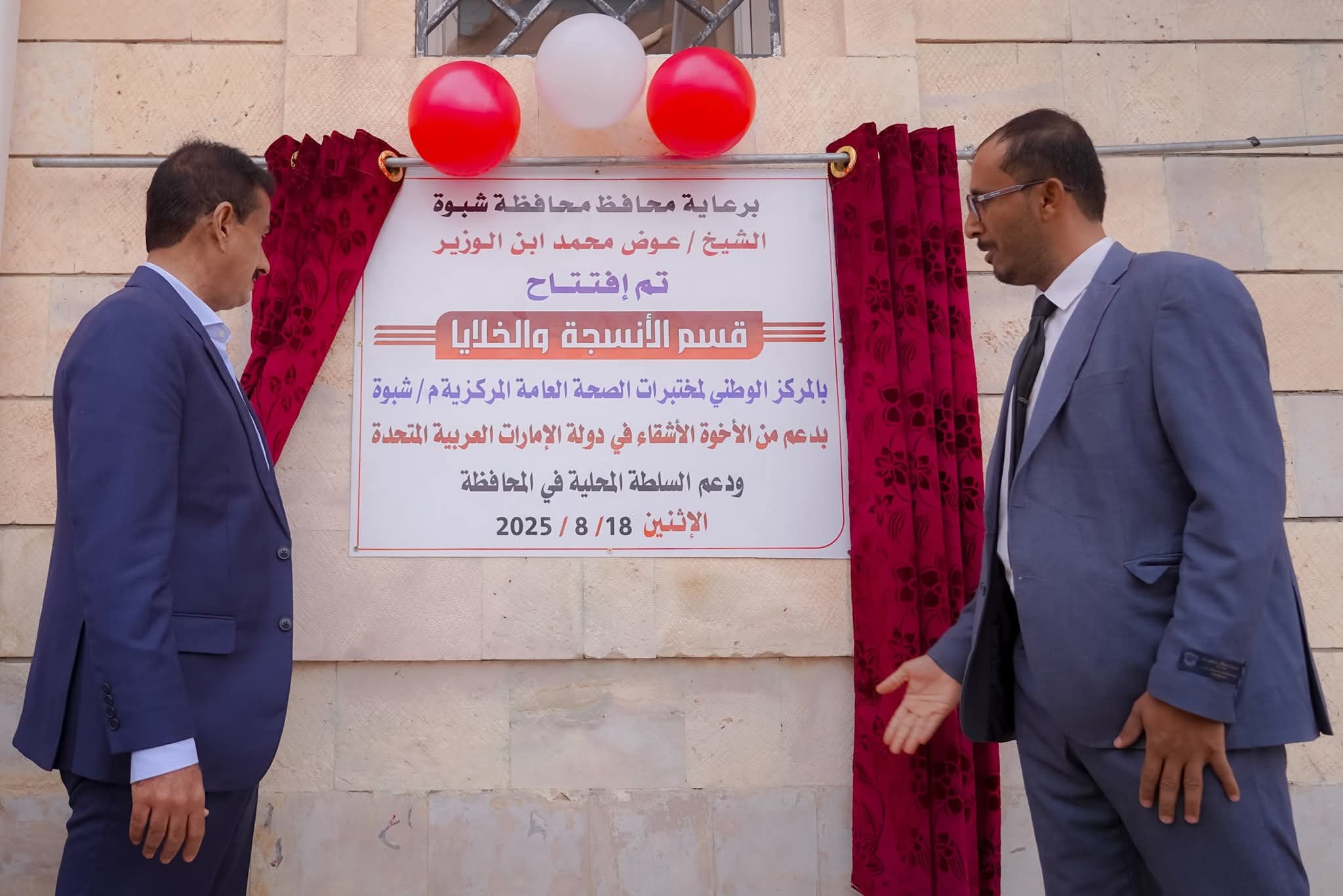 محافظ شبوة يدشّن قسم الأنسجة والخلايا بالمركز الوطني لمختبرات الصحة المركزية بعتق