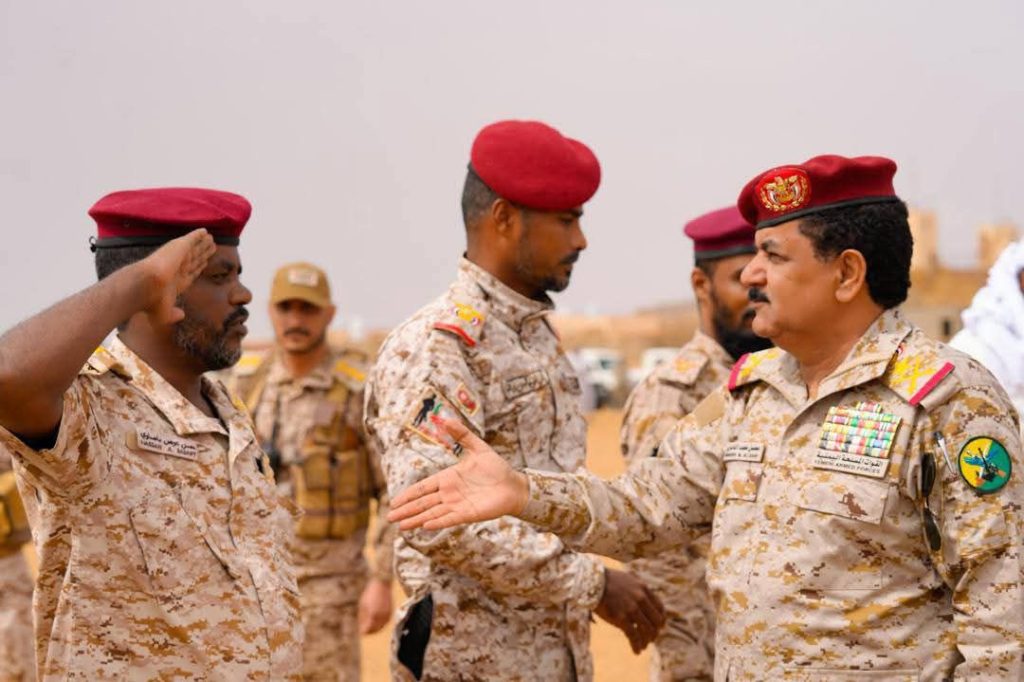 اطلع وزير الدفاع الفريق الركن د. محسن محمد الداعري، اليوم، على أوضاع منتسبي الفرقة الثانية لقوات درع الوطن المتمركزة في منطقة الوديعة بمحافظة حضرموت، متفقدًا سير برامج التدريب ومستوى الانضباط والجاهزية القتالية.