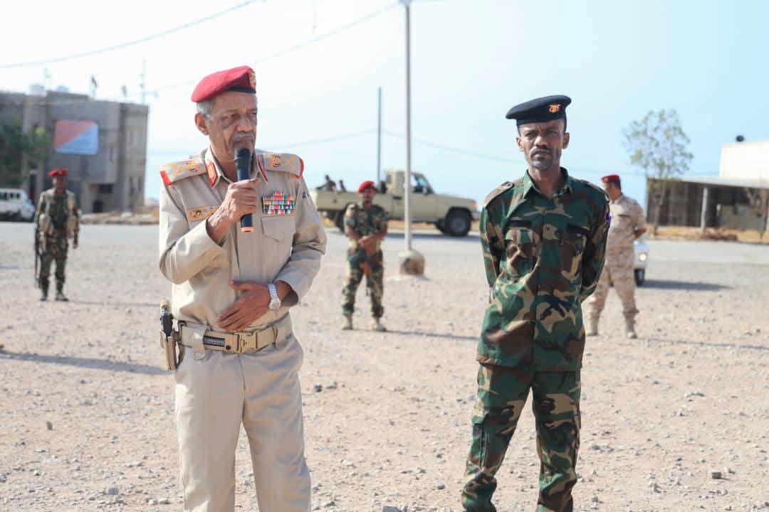 قائد المنطقة العسكرية الثانية يتفقد معسكر الكتيبة الخاصة ويشيد بجهودهم في حفظ الأمن وإسناد القوات الأمنية بالمكلا
