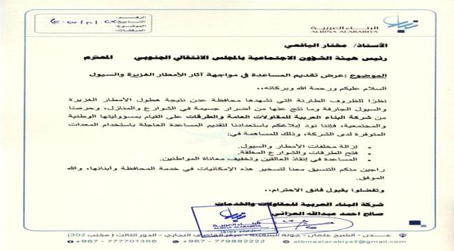 وأكدت الشركة في مذكرة رسمية رفعتها إلى هيئة الشؤون الاجتماعية بالمجلس الانتقالي الجنوبي، حرصها على القيام بواجبها الوطني والمجتمعي من خلال تسخير إمكاناتها للمساهمة في: