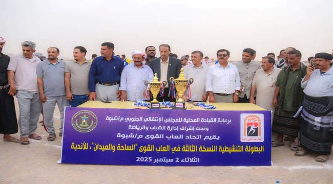 وفي ختام الفعالية التي حضرها كل من عضو هيئة رئاسة المجلس الانتقالي الجنوبي، الدكتور سالم علي القميري، ورئيس الهيئة التنفيذية للقيادة المحلية بالمحافظة، الشيخ لحمر علي لسود، وعدد كبير من الشخصيات الرياضية والشبابية، تمكن فريق “ريدان بيحان” من الفوز بالمركز الأول وحصد كأس البطولة، بينما حصل فريق “طليعة حبان” على المركز الثاني، واحتل “شباب أكتوبر” المركز الثالث.