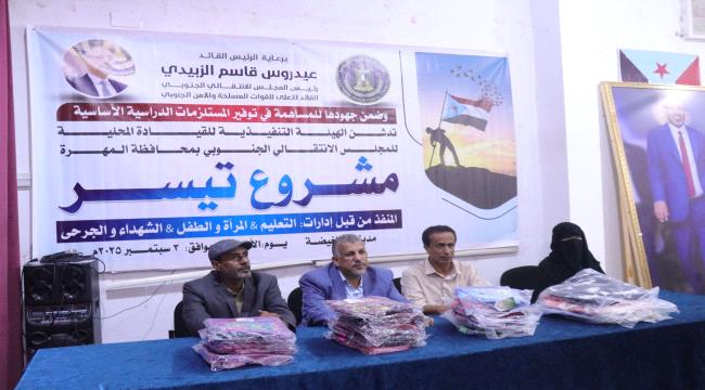 انتقالي المهرة يدشّن مشروع تيسير لدعم الطلاب بالمستلزمات الدراسية