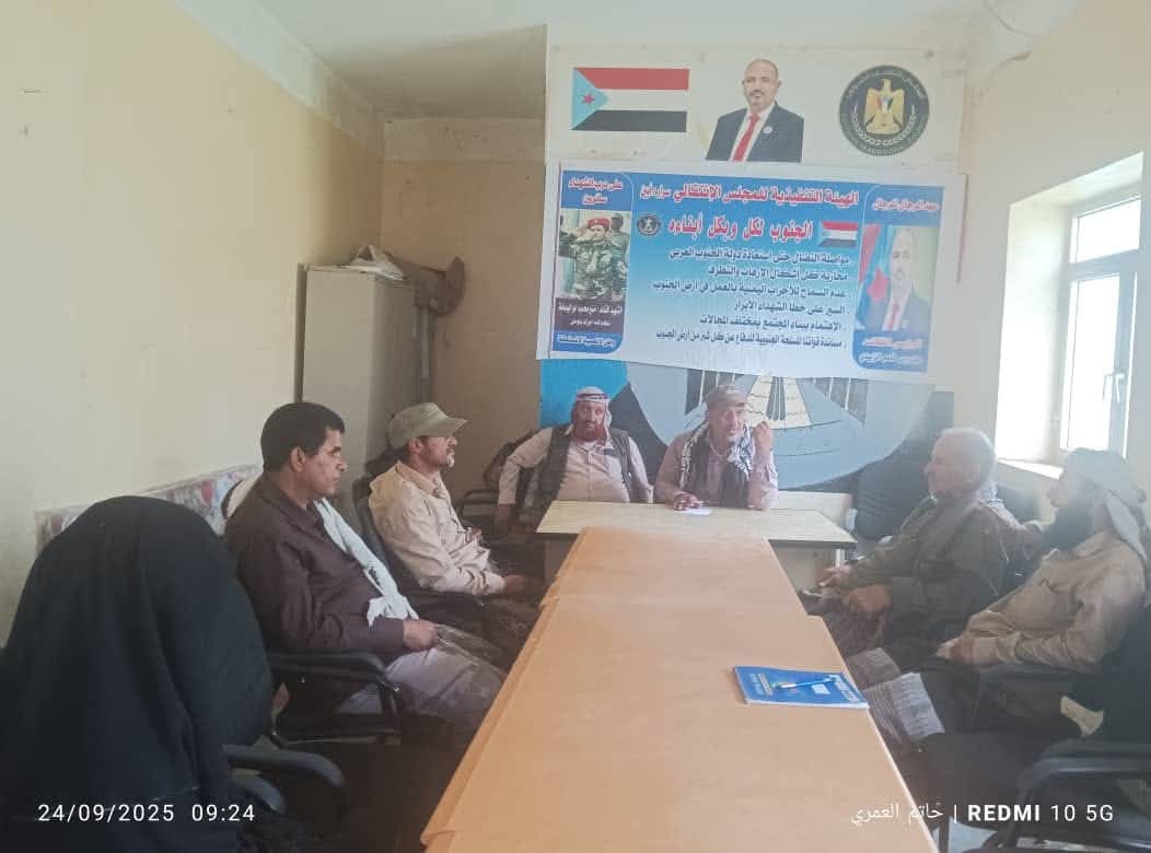 وشدد الاجتماع على أهمية رفع علم دولة الجنوب فوق المدارس كرمز للهوية الوطنية الجنوبية وخطوة لترسيخ قيم الانتماء الوطني لدى الأجيال القادمة، إضافة إلى ضرورة تكاتف الجهود من أجل استعادة الدور الريادي للتعليم كمرتكز أساسي لمستقبل أفضل.