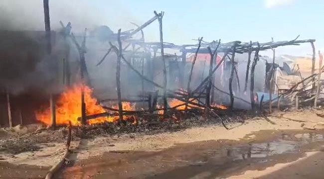 حريق في مخيم نازحين بأبين يتسبب بتشريد خمس أسر