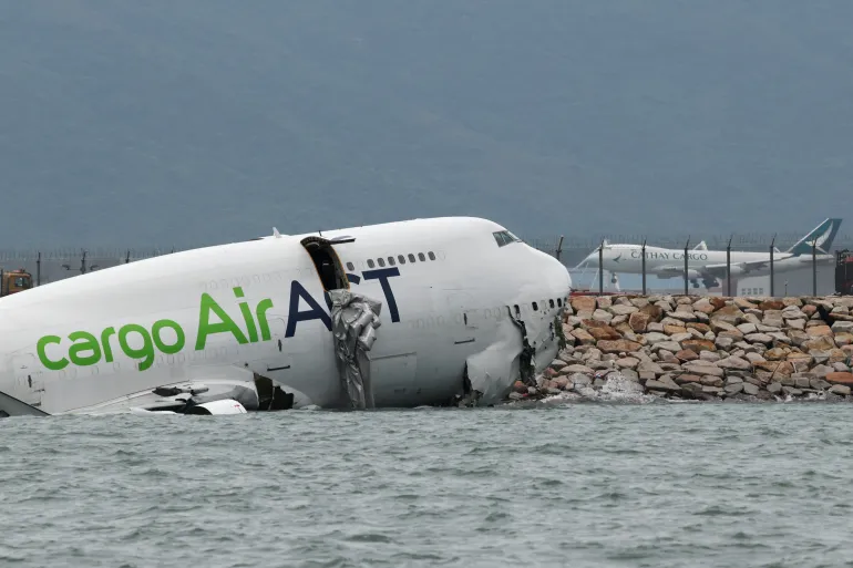 وأعلنت شركة تشغيل مطار هونغ كونغ الدولي أن طائرة شحن قادمة من دبي انحرفت عن المدرج وسقطت في البحر أثناء هبوطها بالمطار.