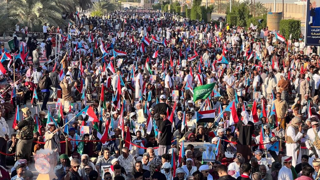 جدد البيان الختامي للاحتفالية الجماهيرية الكبرى في سيئون، بمناسبة الذكرى الـ 58 لعيد استقلال الجنوب العربي، التفويض الكامل للرئيس عيدروس الزُبيدي، رئيس المجلس الانتقالي الجنوبي، لاستكمال تحقيق أهداف شعب الجنوب العربي.